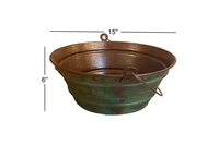 SimplyCopper 15” Round Copper Bucket Sink with Copper and Green Patina design. Created of 18-gauge copper which is hand-hammered to provide a Rustic, Old-World Look. This copper sink is installed as a vessel. Note: This sink has intentional worn areas in the copper to create an antique look. These variations and imperfections are by design. Any imperfections found on this sink are part of its design and should not be looked at by the buyer as a defect.