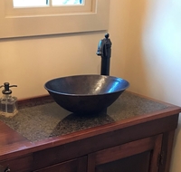 SimplyCopper17” elegant oval bowl design, created of 18-gauge copper which is hand-hammered to provide a rustic antiqued look. This copper sink is installed as a vessel