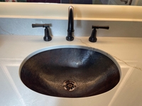 to provide a rustic look This sink is perfect for a a Master Bath or Wine and Whiskey Barrels. This copper sink can be used as either a drop- in or an under mount.