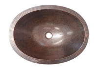 SimplyCopper 19" x 14” is a Oval design, created of 18-gauge copper which is hand-hammered to provide a rustic look. The sink has been lightly brushed to give it a highlighted appearance. This sink is perfect for a a Master Bath or Wine and Whiskey Barrels. This copper sink can be used as either a drop- in or an under mount.