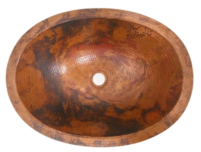 SimplyCopper 19" x 14” is a Oval design, created of 18-gauge copper which is hand-hammered to provide a rustic look This sink is perfect for a a Master Bath or Wine and Whiskey Barrels. This copper sink can be used as either a drop- in or an under mount.