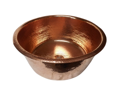 This gorgeous lightweight Hammered Copper Bowl is designed for the perfect foot bath. Large enough for a mans size 14. Bowl may be easily plumbed for a fixed setting. Shown in Shiny Copper.