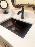 SimplyCopper 20" trough features a slope to each end for positive drain action. The hand hammering provides a rustic touch. All Tig welded 16 gauge copper. This sink can be installed as a drop-in or under mount.
