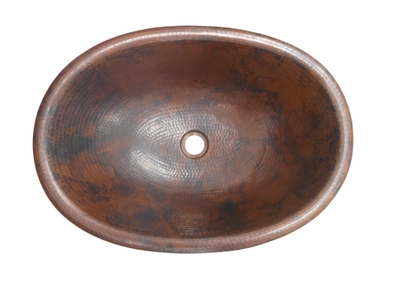 SimplyCopper 21" x 15" rustic oval design, created of 18-gauge copper which is hand-hammered to provide a rustic antiqued look. This sink is perfect for the Master Bath, make this your center piece. This copper sink is installed as a drop- in .