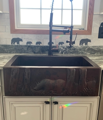 Copper Farmhouse Kitchen Sink BEAR Design Apron Front #BG!