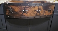 SimplyCopper wants you to Design with the Sink in Mind. This Rustic Farmhouse kitchen sink is hand forged from 16 gauge copper, and 14 gauge copper for the apron. Would fit perfectly into a cabin or lodge decor. This sink is hand-hammered and fired to achieve a gorgeous patina.