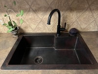 SimplyCopper wants you to Design with the Sink in Mind. This Rustic kitchen sink is hand forged from 16-gauge copper. This sink is hand-hammered and fired to achieve a gorgeous patina. This sink has a 4" lip to the right for installing a faucet.