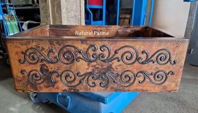 SimplyCopper wants you to Design with the Sink in Mind. This Rustic kitchen sink is hand forged from 16-gauge copper. This sink is built to last, extremley durable heavy duty copper. This sink is hand-hammered and fired to achieve a gorgeous patina.